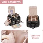 - 【PROFESSIONAL MAKEUP CASE】 The rolling makeup suitcase features double layers design to hold all makeup essentials. Upper compartment can be divided into 4 areas by 2 adhesive dividers. A mesh pocket in the top flap for keeping facial mask, samples, etc. (Empty bag only, NOT includes any supplies.)